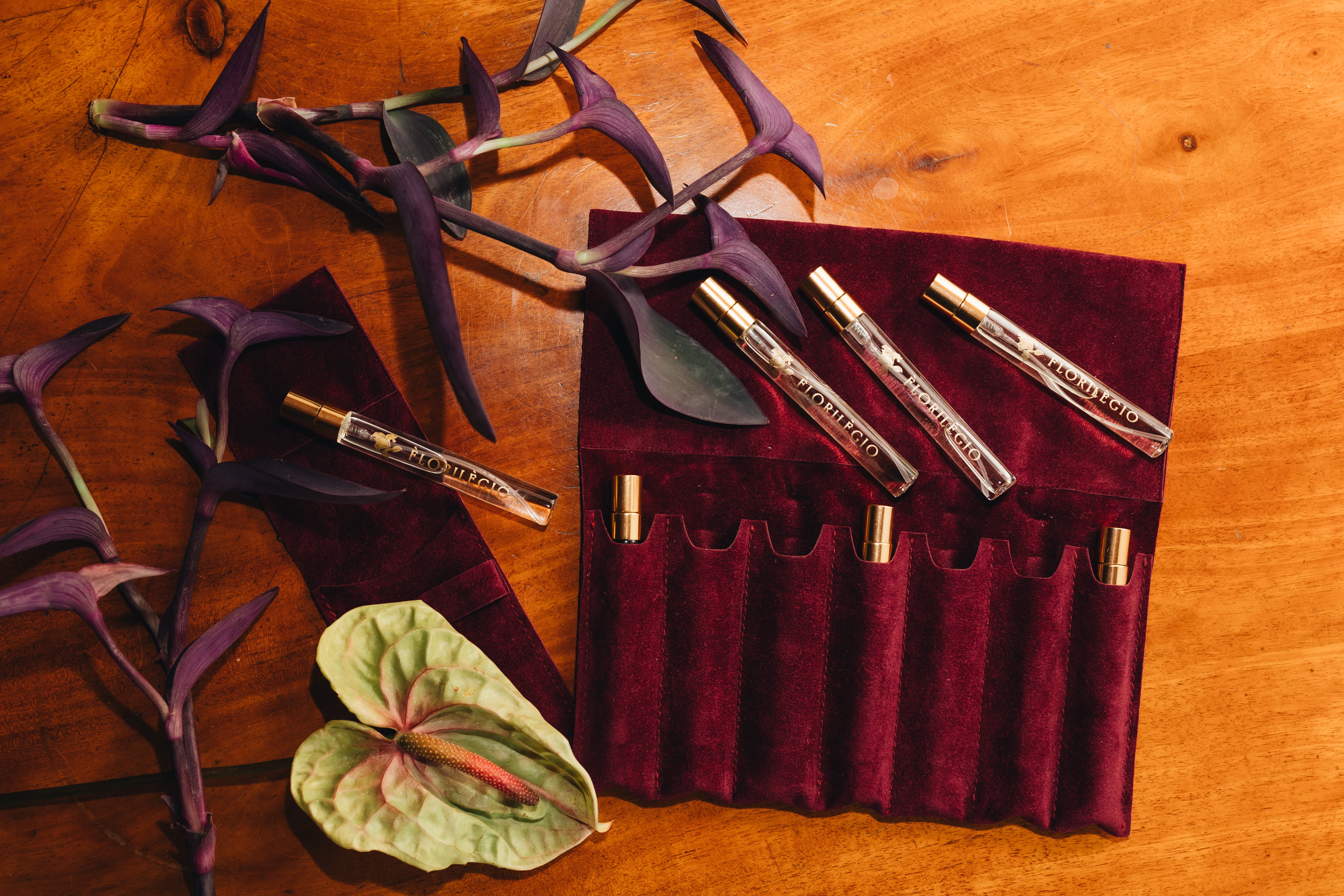 Florilegio is a collection of seven extraits de parfum designed to be worn individually or layered together.